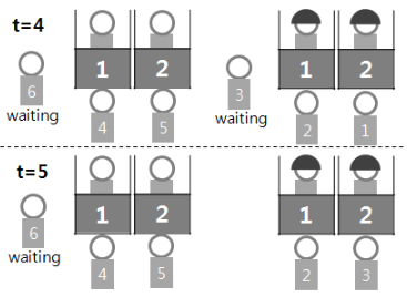 손님을 다음 단계(?)로 보내 주어야 한다. 물론 처리 시간을 다한 창구에 한에서 말이다
