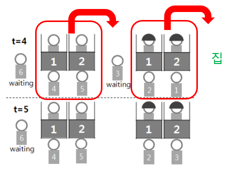 이 그림을 보면 풀이(?)에 가까운 답을 떠올릴 수 있다. 대기실에 있던 손님이 창구로 가기 위해서는 창구에 있는
