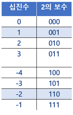 2. 2의 보수 수학 연산은 비트 연산자 NOT(0을 1로 1을 0으로)에서 1을 더한 것이다.