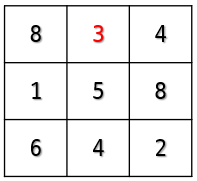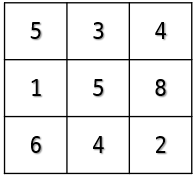 위의 문제는 3x3 배열 매직 스퀘어의 각 행의 합, 각 열의 합, 대각선의 합이 15라는 사실을 알고 풀어야 하는 문제입니다. 문제에 연결된 매직 스퀘어의 링크(위키백과) 설명을 제대로 읽지 못해 조건을 잘못 걸어 여러 번의 제출에도 해결하지 못하여 쓸데없는 시간을 소요하였습니다.